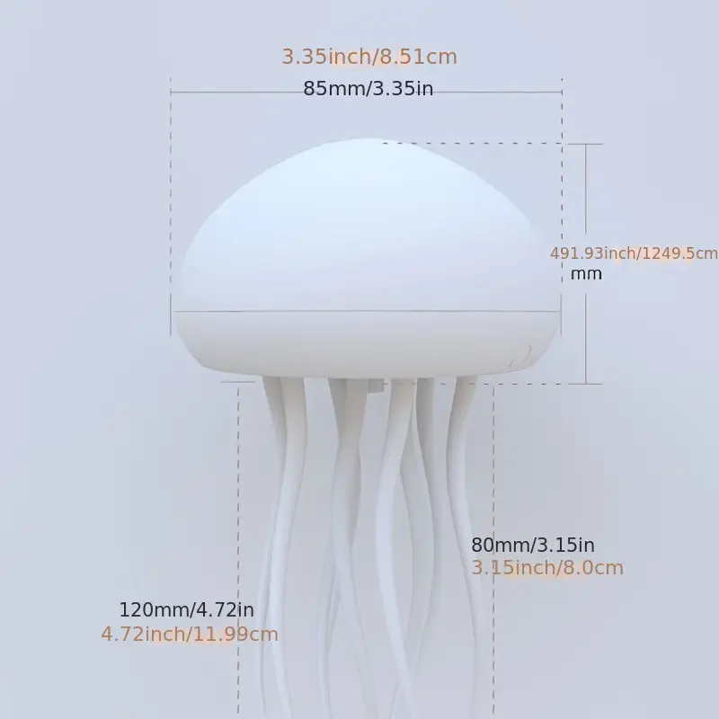 Aurora Mood Light, Dynamic Jellyfish LED Lamp, RGB Gradient, Voice Control, Hanging Indoor Light, Eye-Friendly Warm Light, Sound Activated, Rechargeable Battery, USB Dual Power, Plastic Material, Button Switch, ≤36V, 600mAh Battery Capacity